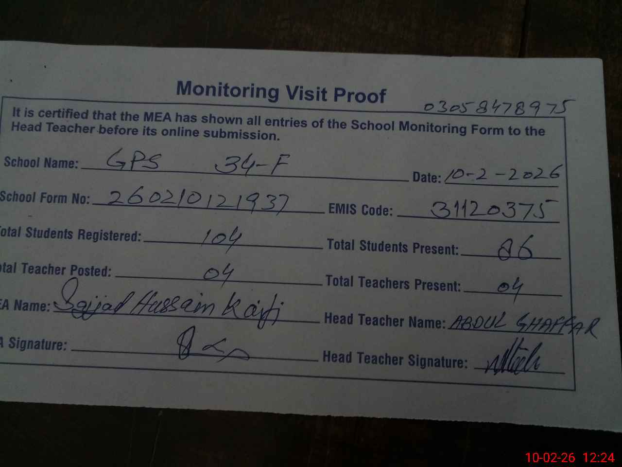 | EMIS Code: 31120375 | Name of School: GPS CHAK NO 34/F | |||