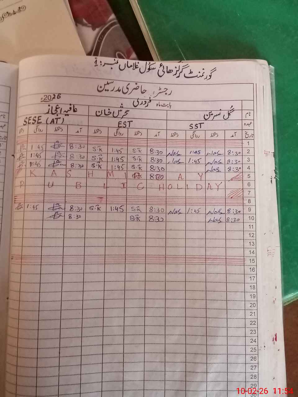 | District: BHAKKAR | Tehsil: KALLUR KOT | Markaz: SECONDARY-WING | Level: High | |