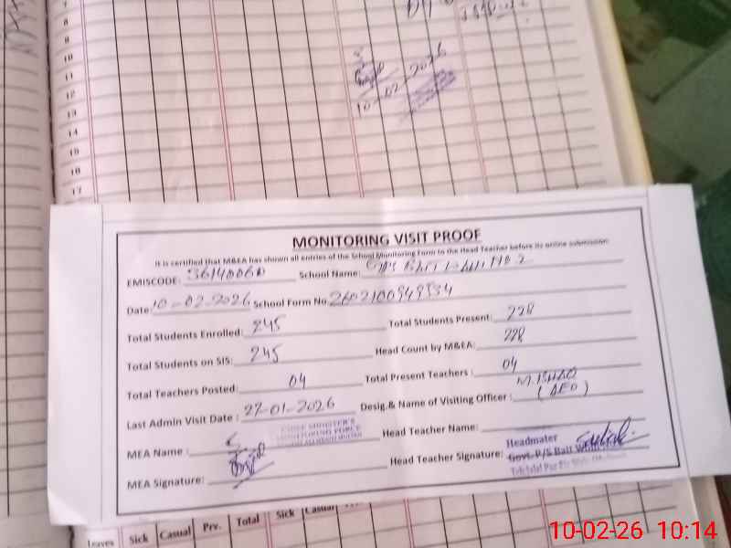 | EMIS Code: 36140060 | Name of School: GPS BAIT WAHI NO:2 P/O BAHADUR PUR | |||
