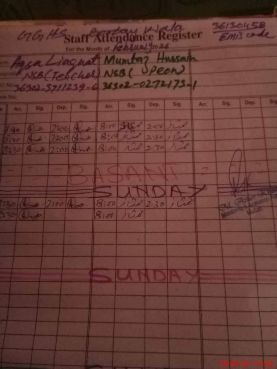 | Name: SA**** NA**** Designation: (School Headmaster's/Headmistress's) Incharge Head SST G Phone/Cell Number: 03**** |