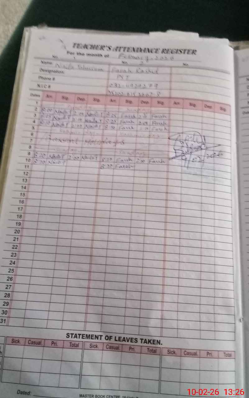| Name: Na**** Ta**** Designation: (School Headmaster's/Headmistress's) PST Phone/Cell Number: 03**** |