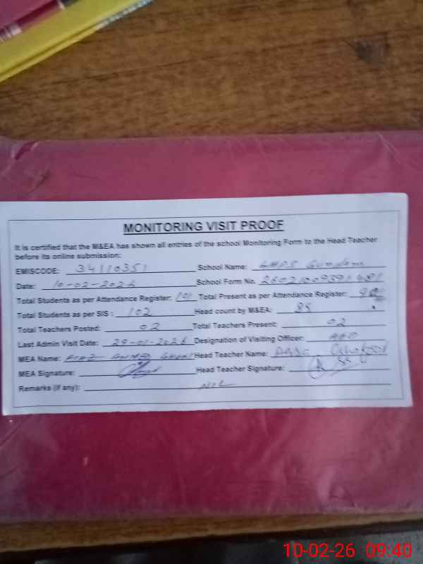 | Attendance Register | Head Teacher | MEA with School | Visit Proof |