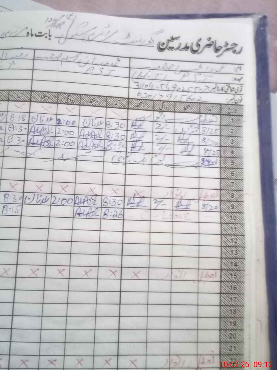 | Name: ME**** ULHA**** Designation: (School Headmaster's/Headmistress's) PST Phone/Cell Number: 03**** |