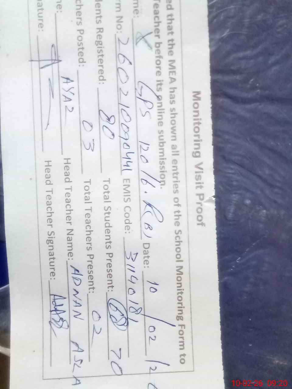 | EMIS Code: 31140181 | Name of School: GPS CHAK NO 120/6-R (E) | |||