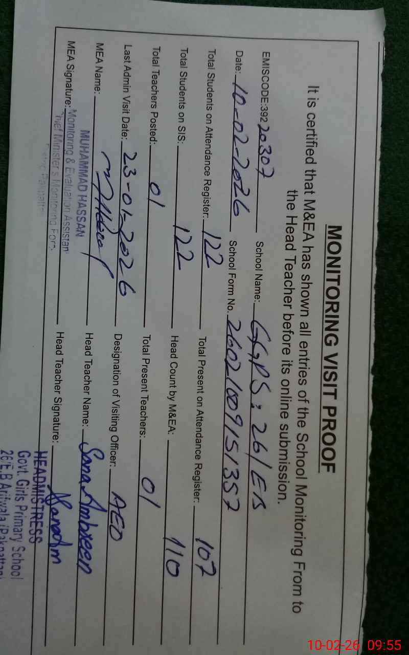 | EMIS Code: 39220307 | Name of School: GGPS 26 EB | |||