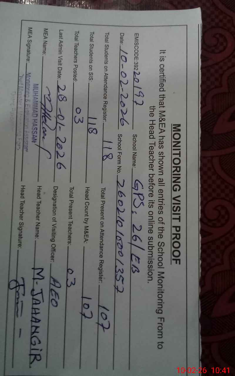 | EMIS Code: 39220197 | Name of School: GPS 26/EB | |||