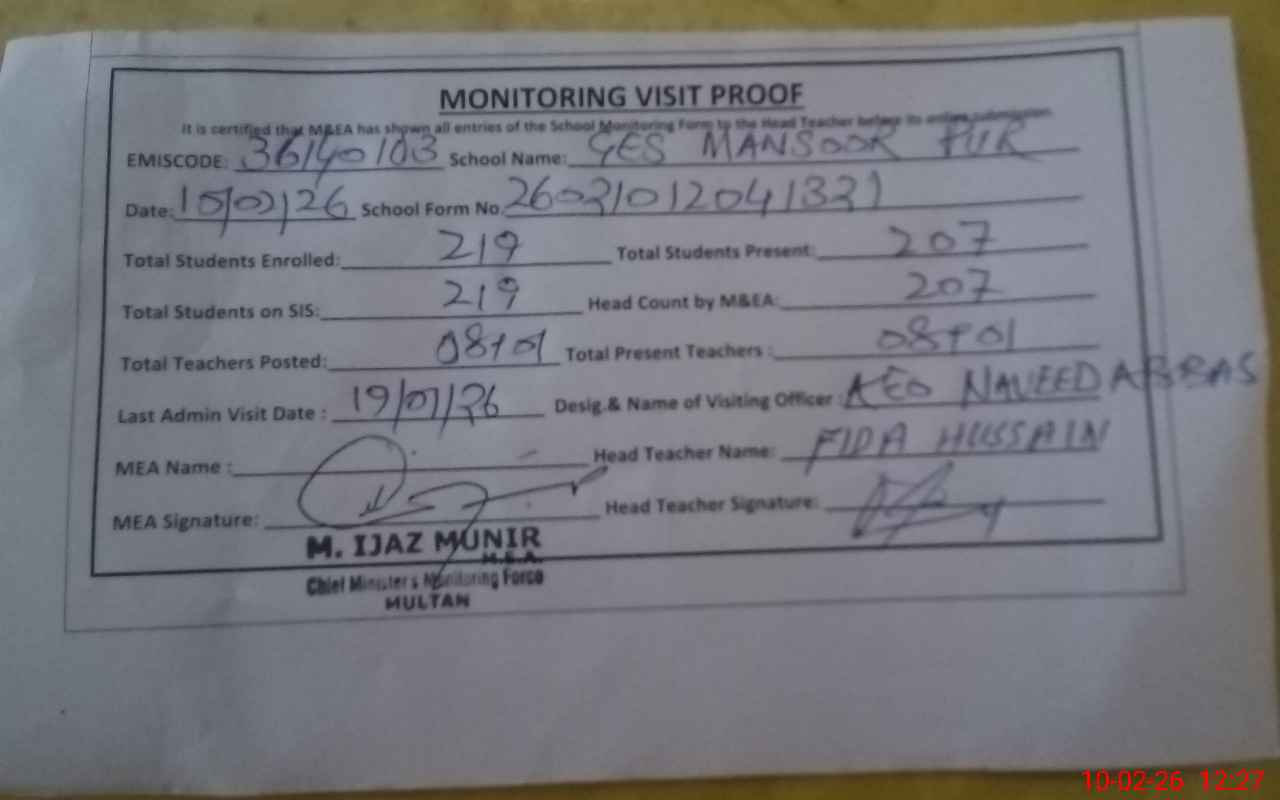 | EMIS Code: 36140103 | Name of School: GES MANSOOR PUR MOUZA MANSOOR PUR TAH. JALALPUR PIRWALA | |||