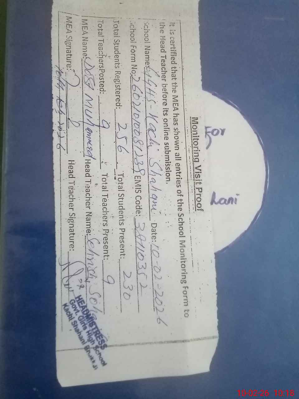 | EMIS Code: 38110352 | Name of School: GGHS KACHI SHHAANI | |||