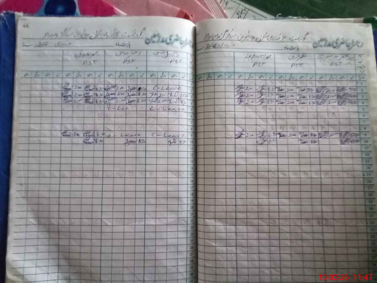 | Leave | Duty | Absent | Maternity | Medical | Ex- Pak |