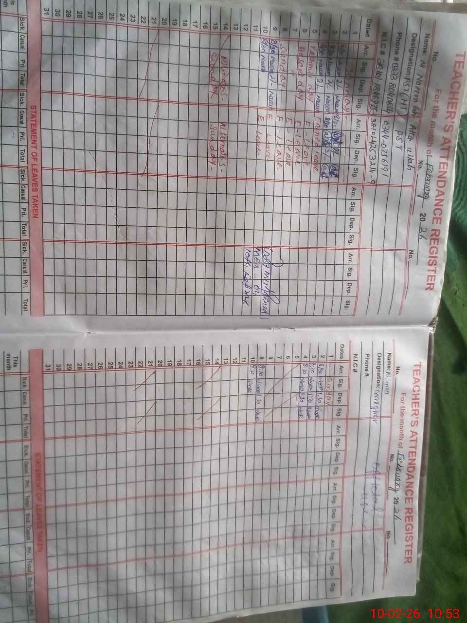 | Name: Mu**** Na**** Designation: (School Headmaster's/Headmistress's) PST Phone/Cell Number: 03**** |