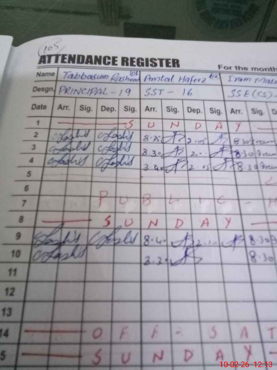 | 35**** | Hi**** Ij**** | PST Science/Maths | Regular | 0 | 0 | 31 | 0 | 0 | 0 | 0 | 0 | 0 | Absent (Un-Authorized) |