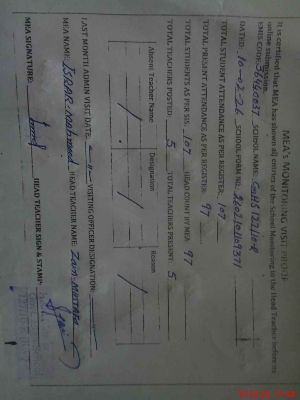 | EMIS Code: 36440037 | Name of School: GHS 127/10-R, JAHANIAN | |||