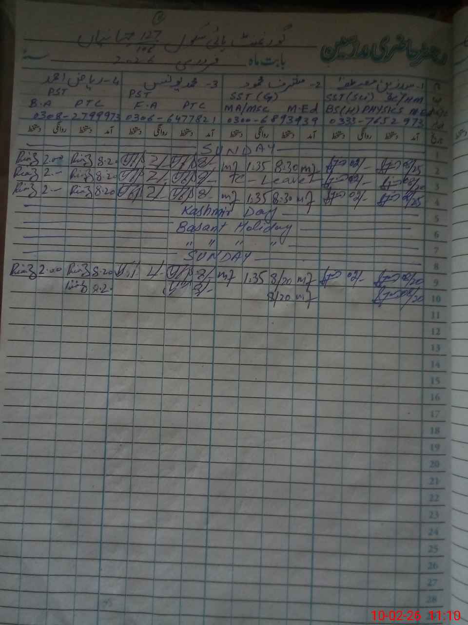 | Name: Sy**** Za**** Mu**** Designation: (School Headmaster's/Headmistress's) SST Phone/Cell Number: 03**** |