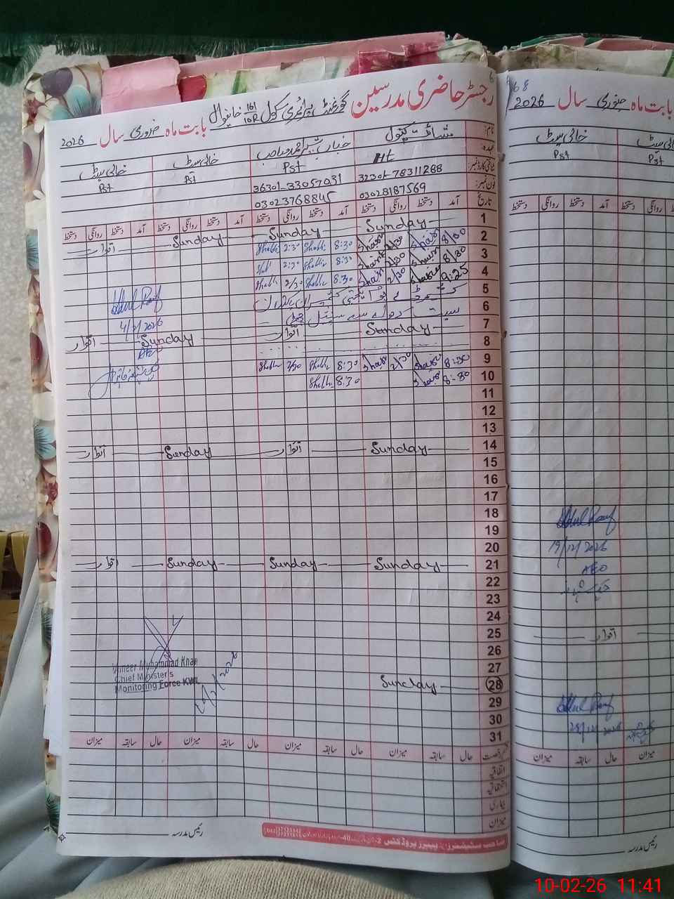 | Name: Sh**** Ka**** Designation: (School Headmaster's/Headmistress's) PST Phone/Cell Number: 03**** |