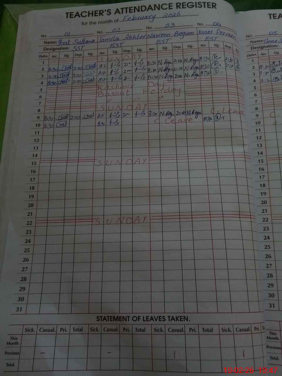 | 36**** | Fa**** Ka**** | PST | Regular | 0 | 0 | 5 | 0 | 0 | 0 | 0 | 0 | 0 | Absent (Un-Authorized) |