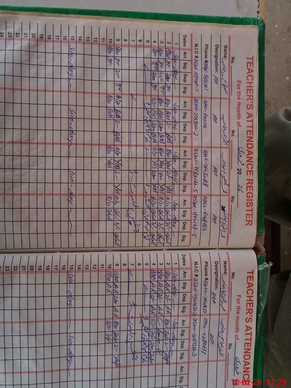 | CNIC | Full Name | Designation | R/C | Absence During Last Calender Month |