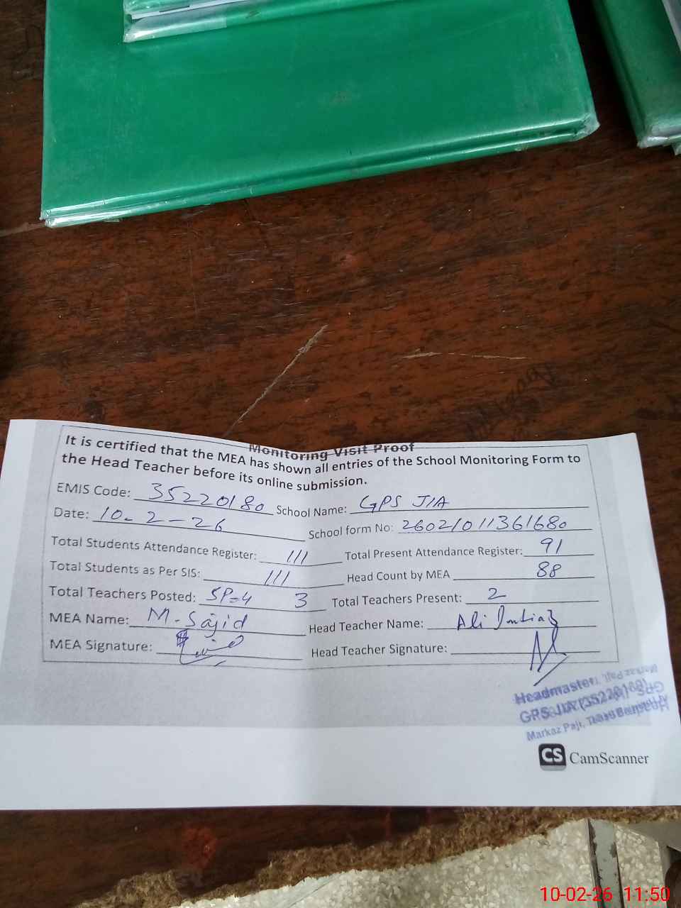 | EMIS Code: 35220180 | Name of School: GPS JIA | |||