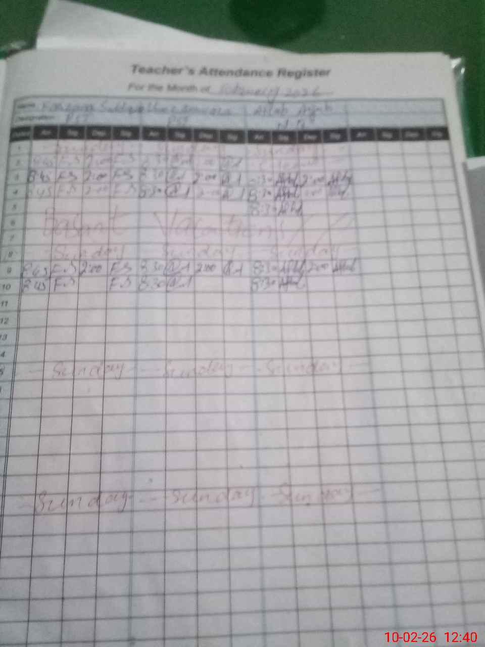 | Monitoring Date: 10-02-2026 | Start Time: 10-02-2026 12:39 PM | End Time: 10-02-2026 12:58 PM | Name of MEA: C-**** Al**** | |