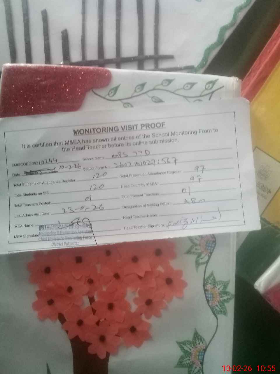 | EMIS Code: 39210244 | Name of School: GPS CHAK NO. 77 /D | |||