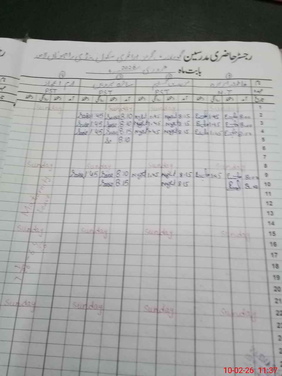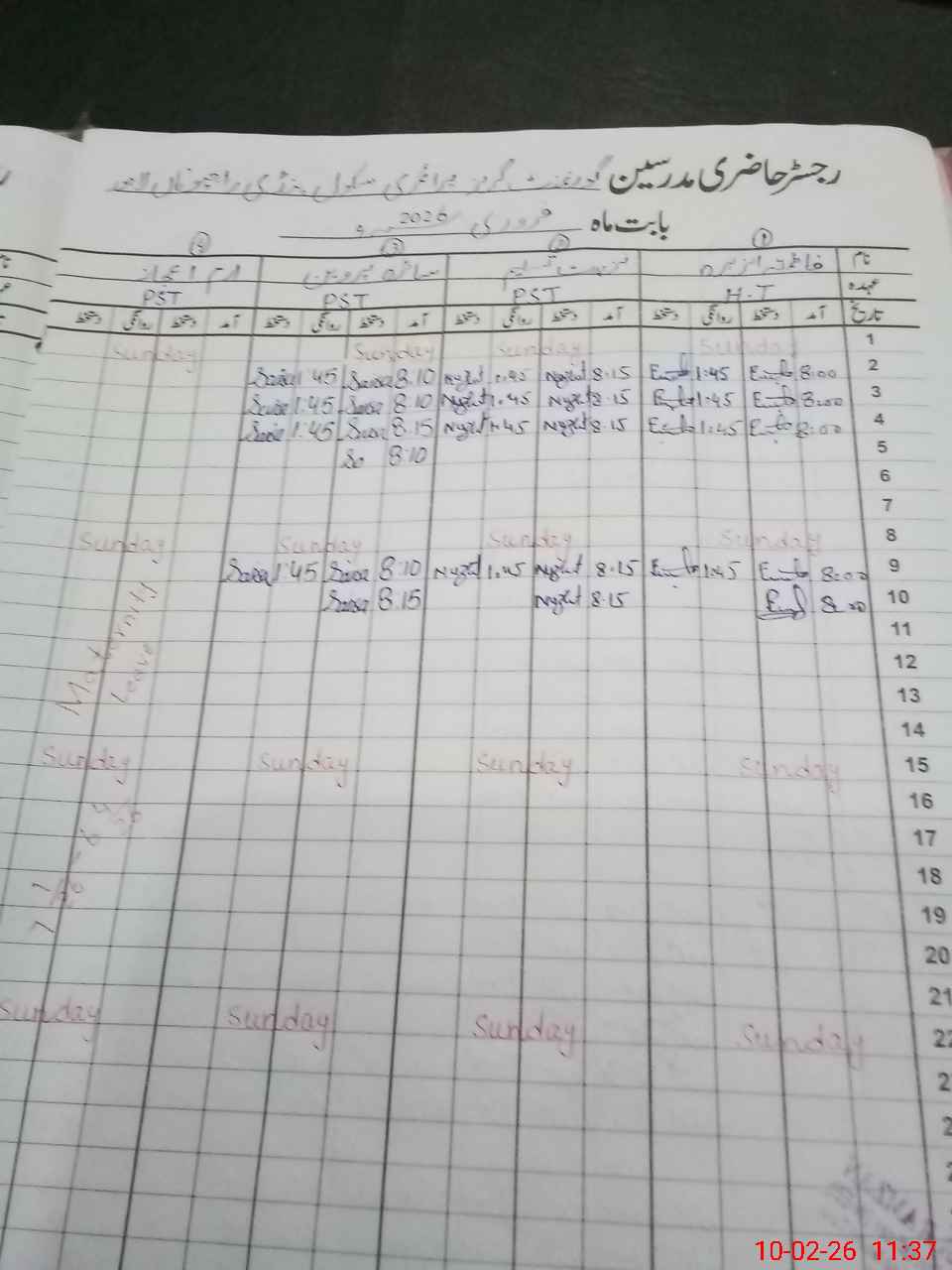 | CNIC | Full Name | Designation | R/C | Absence During Last Calender Month |