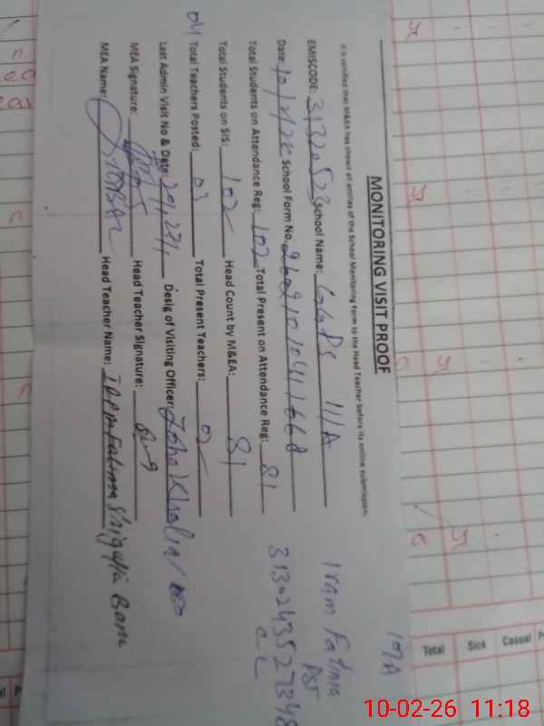 | Monitoring Date: 10-02-2026 | Start Time: 10-02-2026 10:41 AM | End Time: 10-02-2026 11:19 AM | Name of MEA: Za**** Iq**** | |