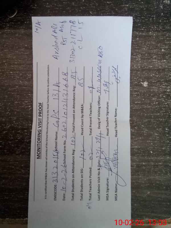 | Monitoring Date: 10-02-2026 | Start Time: 10-02-2026 12:35 PM | End Time: 10-02-2026 01:03 PM | Name of MEA: Za**** Iq**** | |