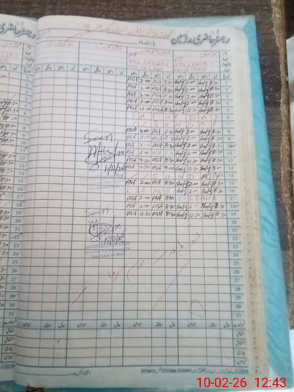 | CNIC | Full Name | Designation | R/C | Absence During Last Calender Month |