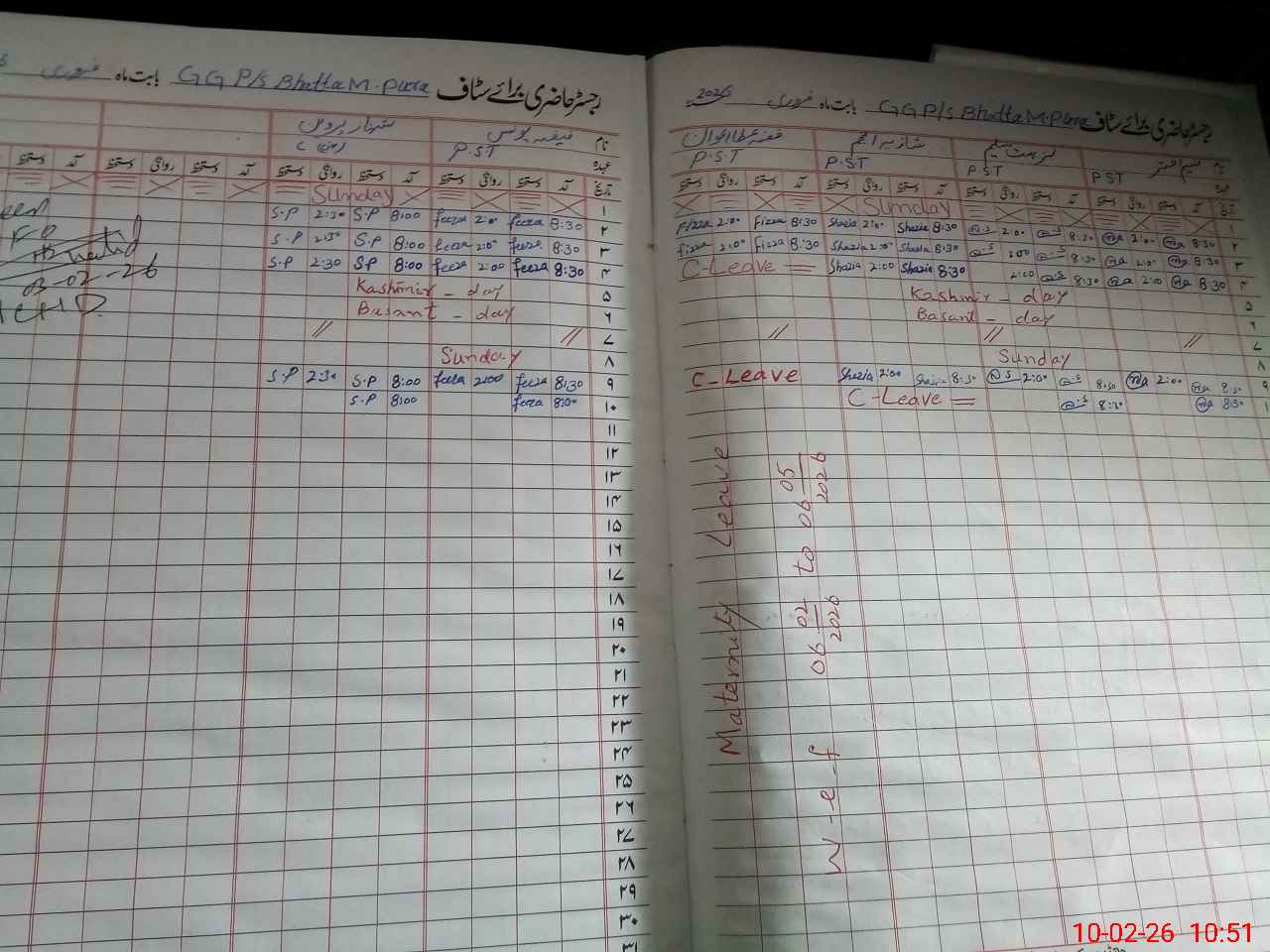 | Leave | Duty | Absent | Maternity | Medical | Ex- Pak |
