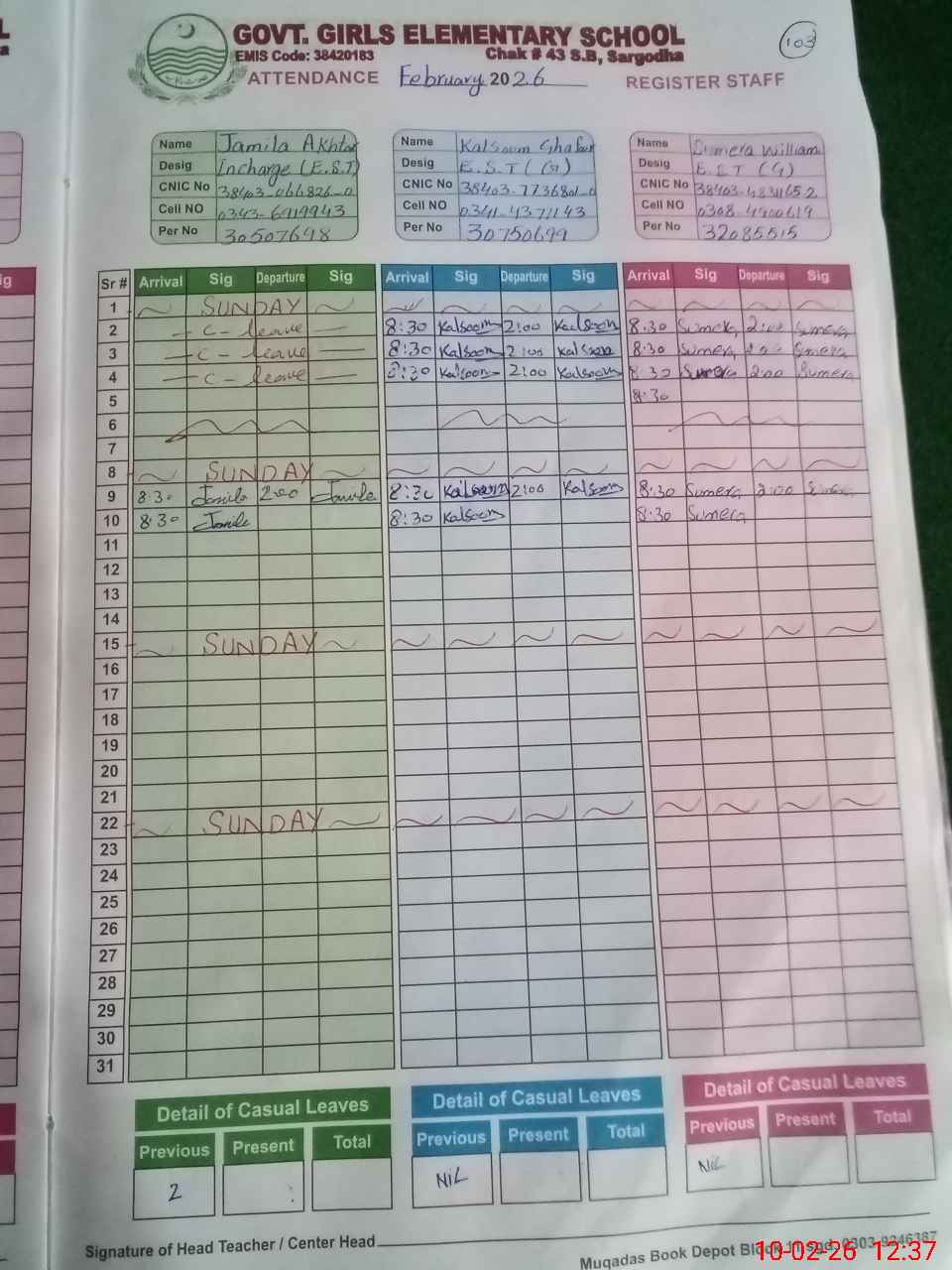 | EMIS Code: 38420183 | Name of School: GGES CHAK NO.43 SB | |||