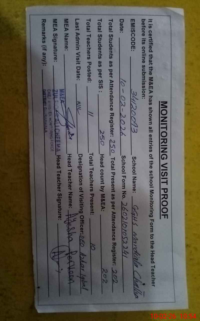 | EMIS Code: 34120093 | Name of School: GGHS MANDIALA CHATHA | |||