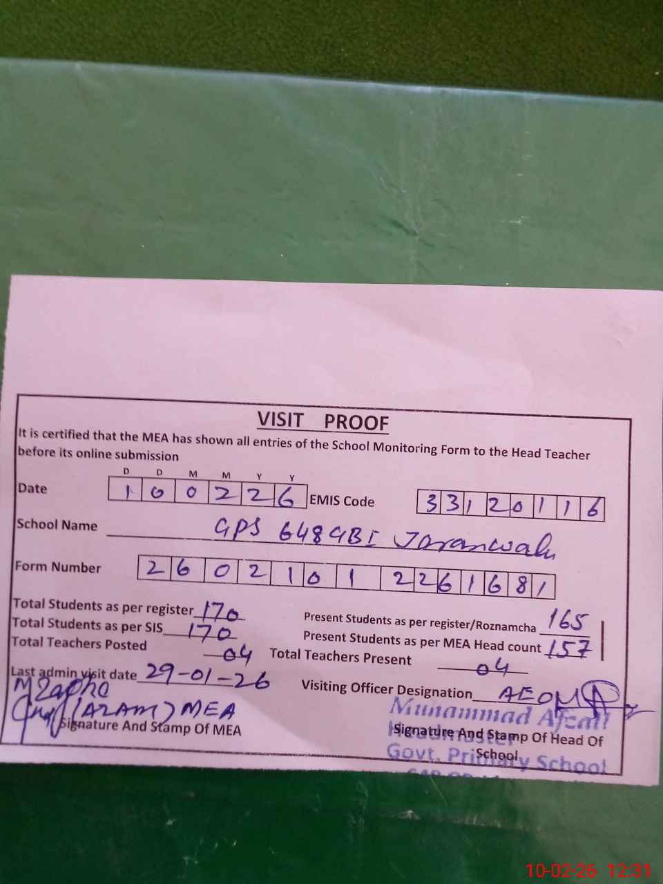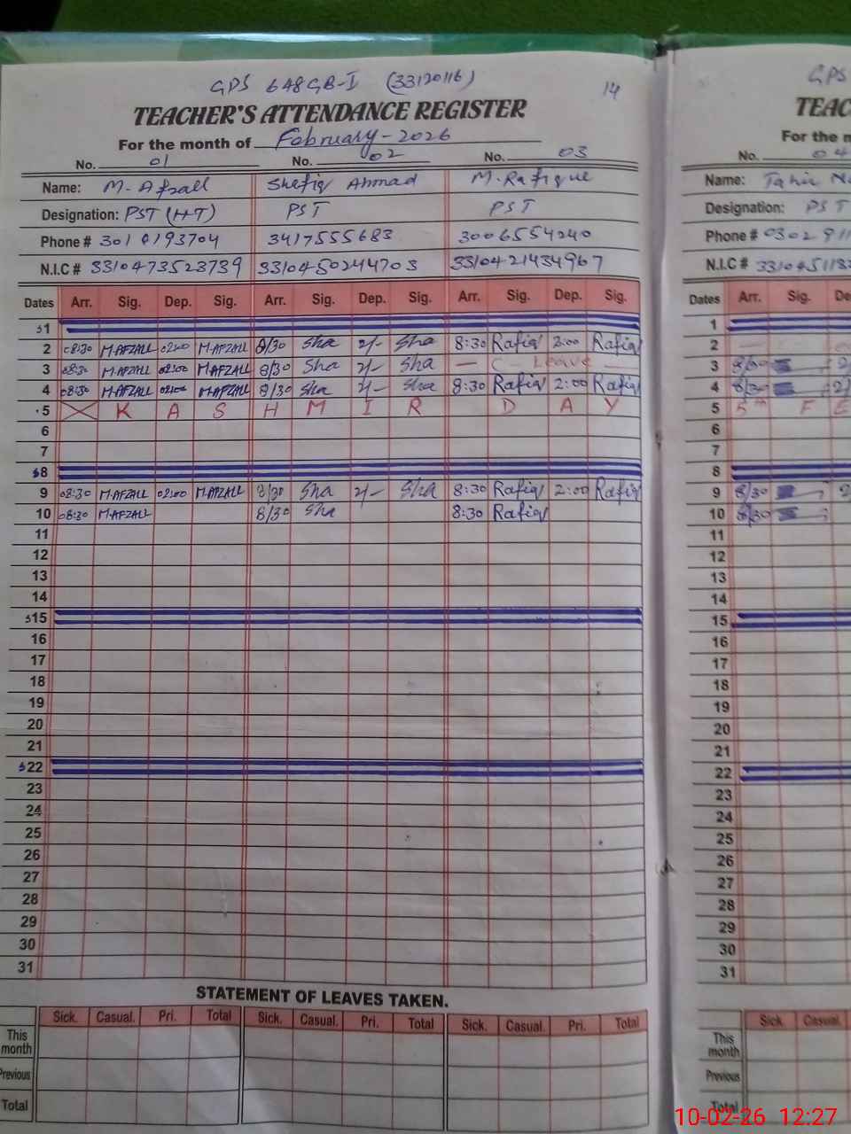 | EMIS Code: 33120116 | Name of School: GPS CHAK 648 GB I | |||