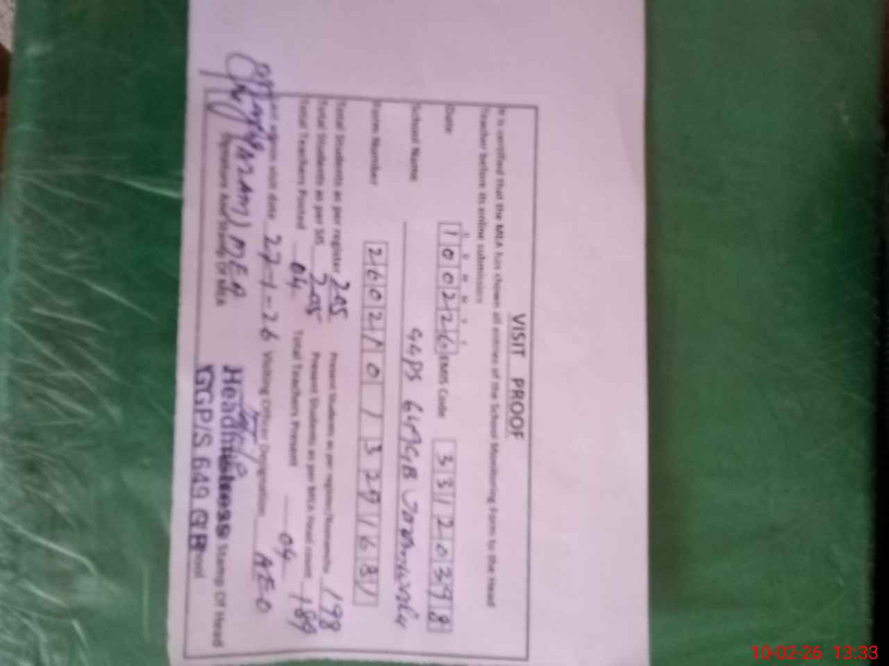 | Certified that this School was Inspected by the Undersigned MEA/DMO Today and the Information Stated Above is as Per Record. | |||||