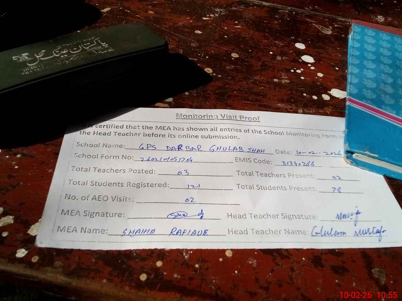 | EMIS Code: 31340266 | Name of School: GPS DARBAR GHULAB SHAH | |||