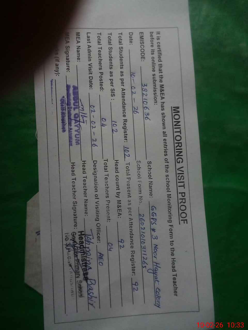 | EMIS Code: 38210636 | Name of School: GGPS NO. 3 HADALI NOOR HAYAT COLONY HADALI | |||