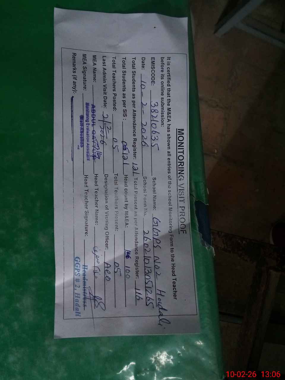 | EMIS Code: 38210635 | Name of School: GGPS NO. 2 HADALI | |||