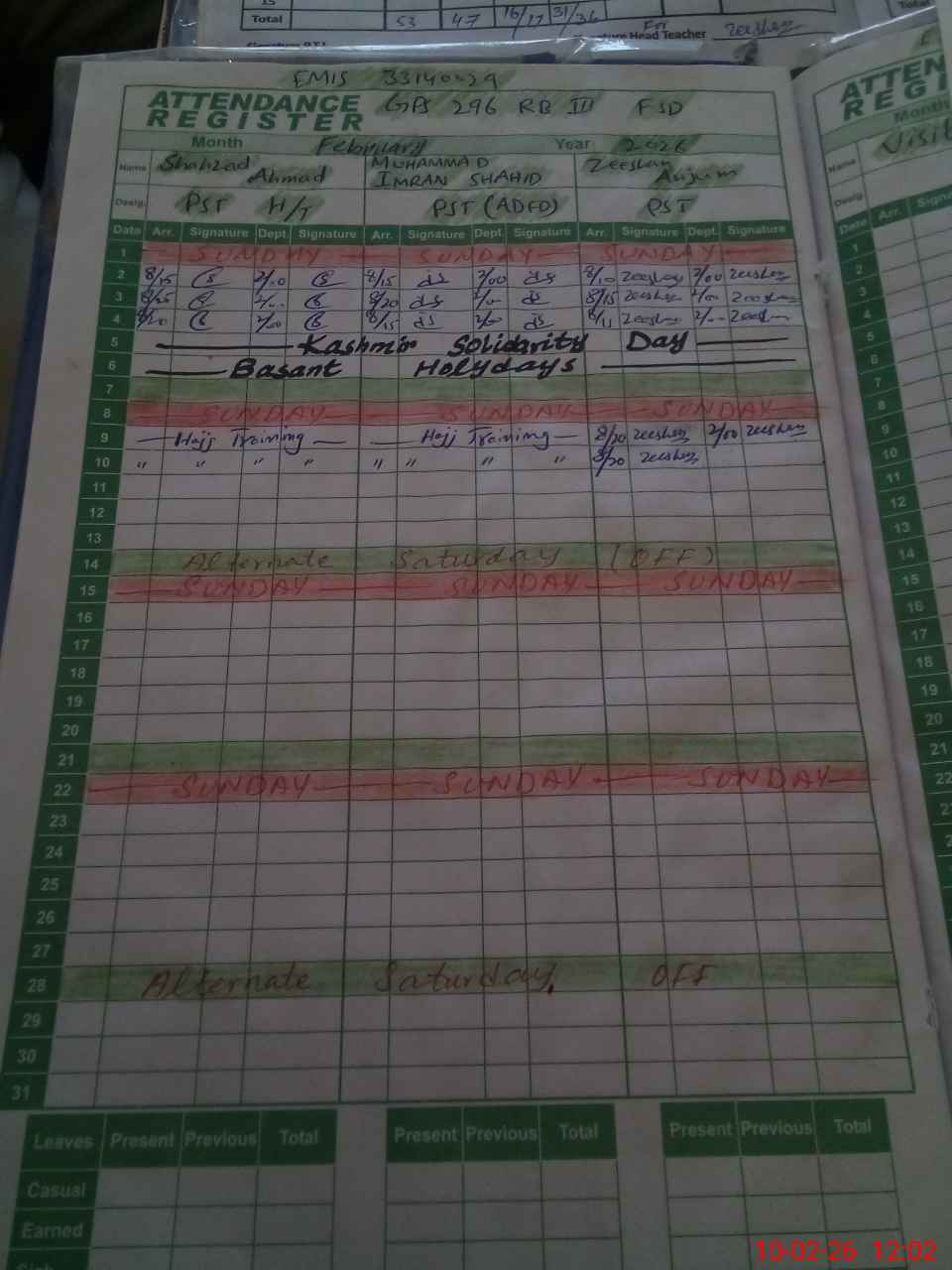 | Name: SH**** AH**** Designation: (School Headmaster's/Headmistress's) PST Phone/Cell Number: 03**** |