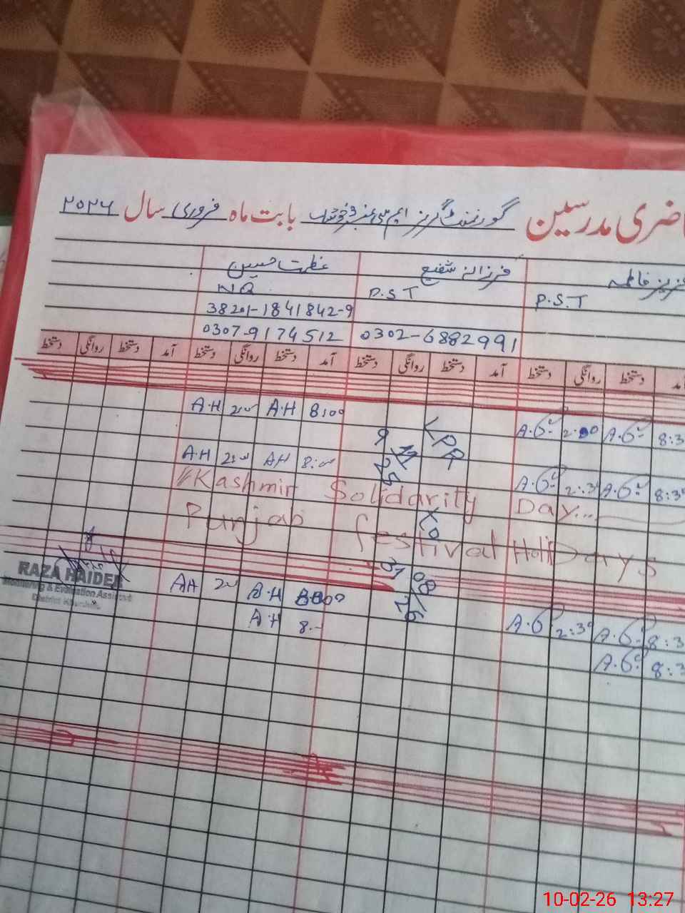 | Name: NO**** AK**** Designation: (School Headmaster's/Headmistress's) PST Phone/Cell Number: 03**** |