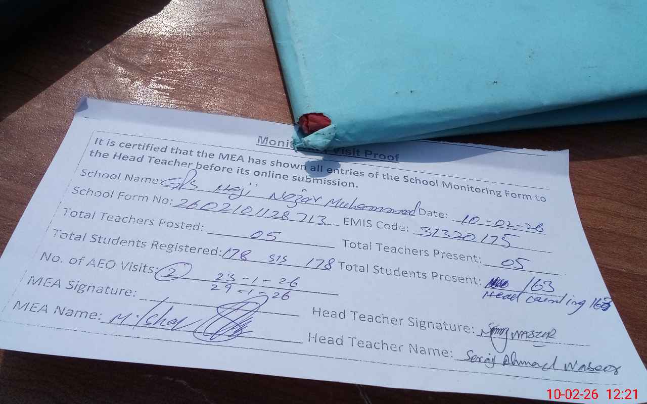 | EMIS Code: 31320175 | Name of School: GPS HAJI NAZAR MUHAMMAD | |||