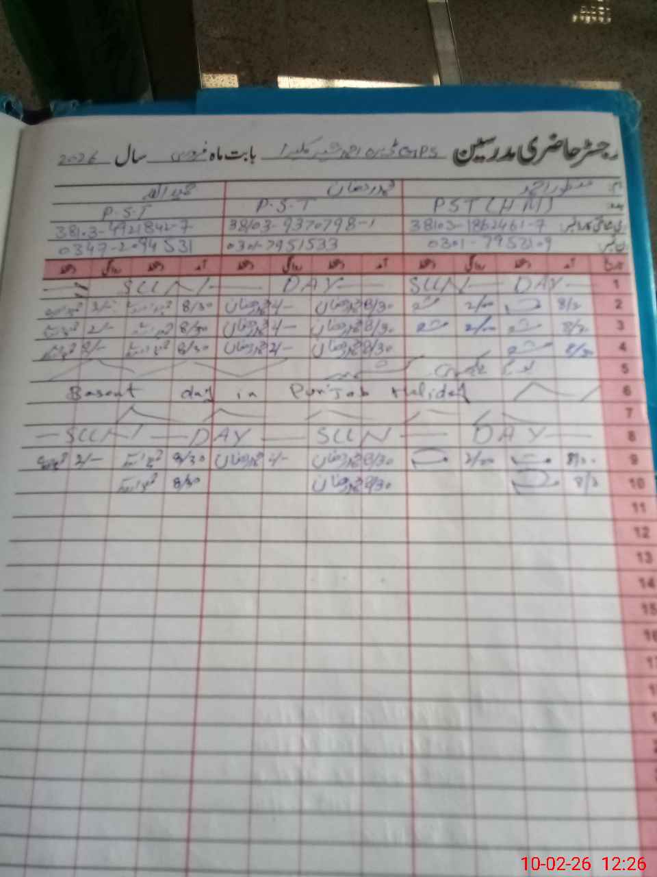 | CNIC | Full Name | Designation | R/C | Absence During Last Calender Month |