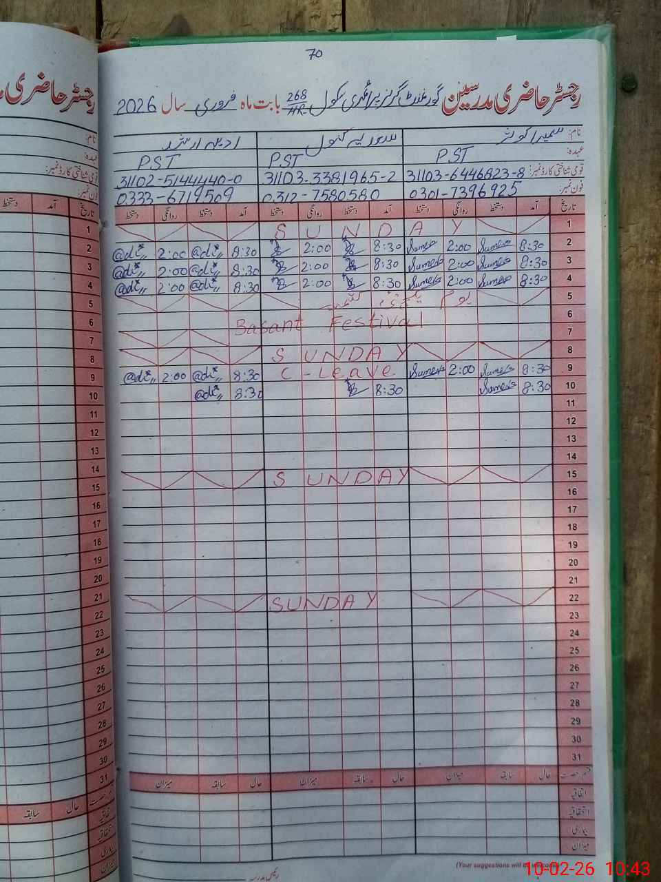 | Name: Su**** Ko**** Designation: (School Headmaster's/Headmistress's) PST Phone/Cell Number: 03**** |