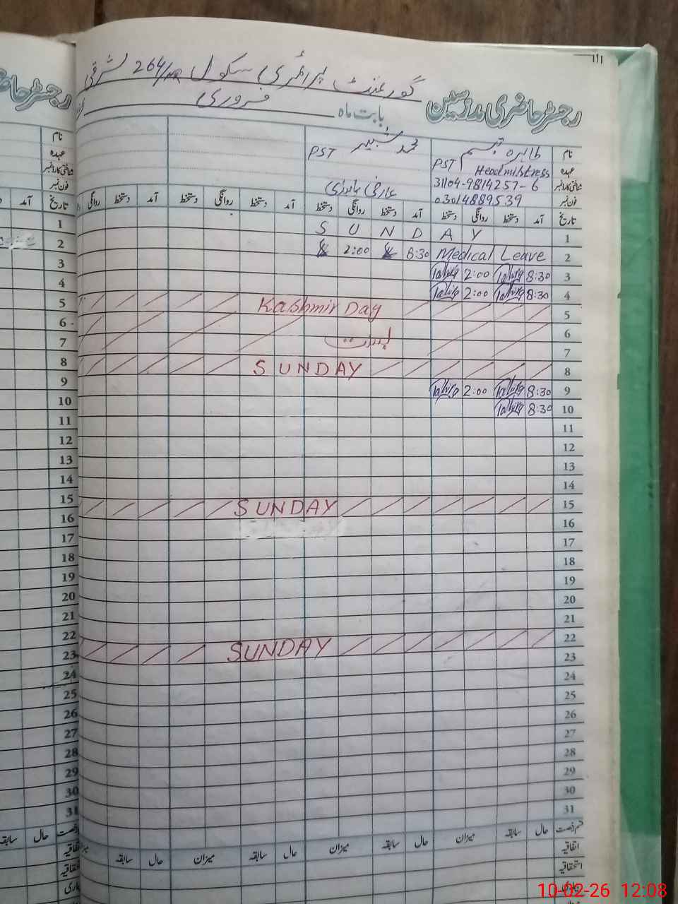 | Leave | Duty | Absent | Maternity | Medical | Ex- Pak |