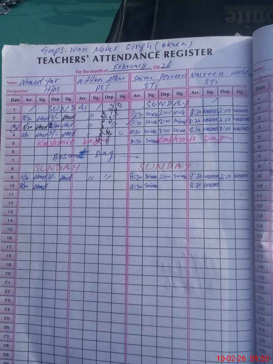 | Monitoring Date: 10-02-2026 | Start Time: 10-02-2026 09:43 AM | End Time: 10-02-2026 10:08 AM | Name of MEA: KH**** WA**** | |
