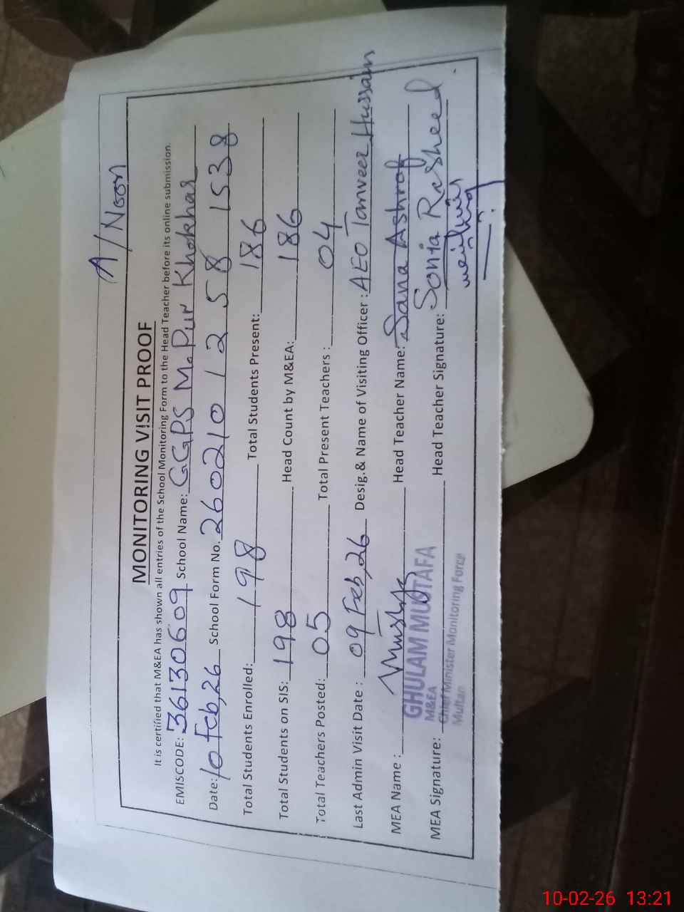 | Monitoring Date: 10-02-2026 | Start Time: 10-02-2026 12:58 PM | End Time: 10-02-2026 01:28 PM | Name of MEA: Gh**** Mu**** | |
