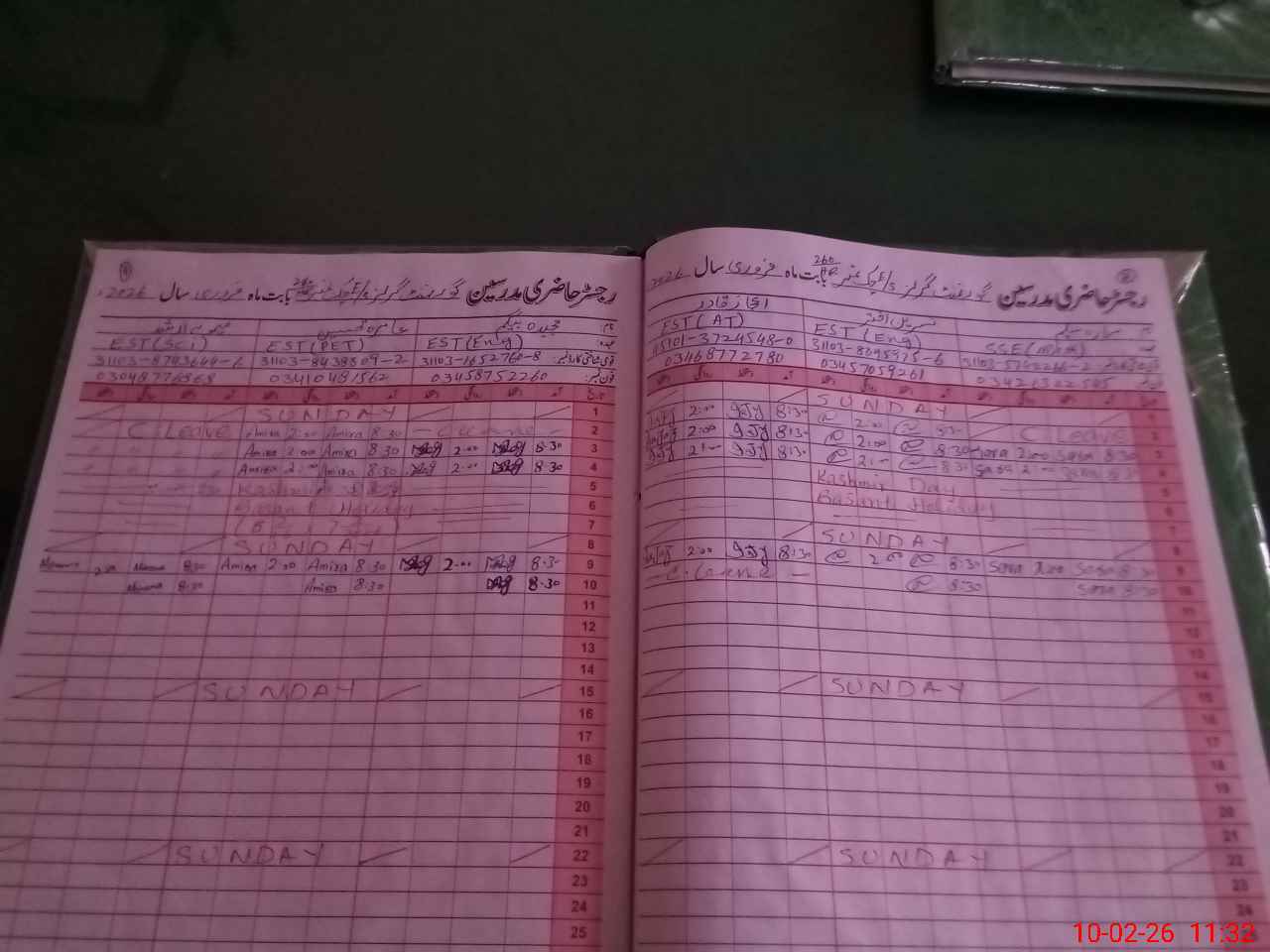 | 31**** | Am**** Ha**** | SESE Urdu | Contract | 0 | 0 | 0 | 0 | 0 | 0 | 0 | 0 | 0 | Casual |