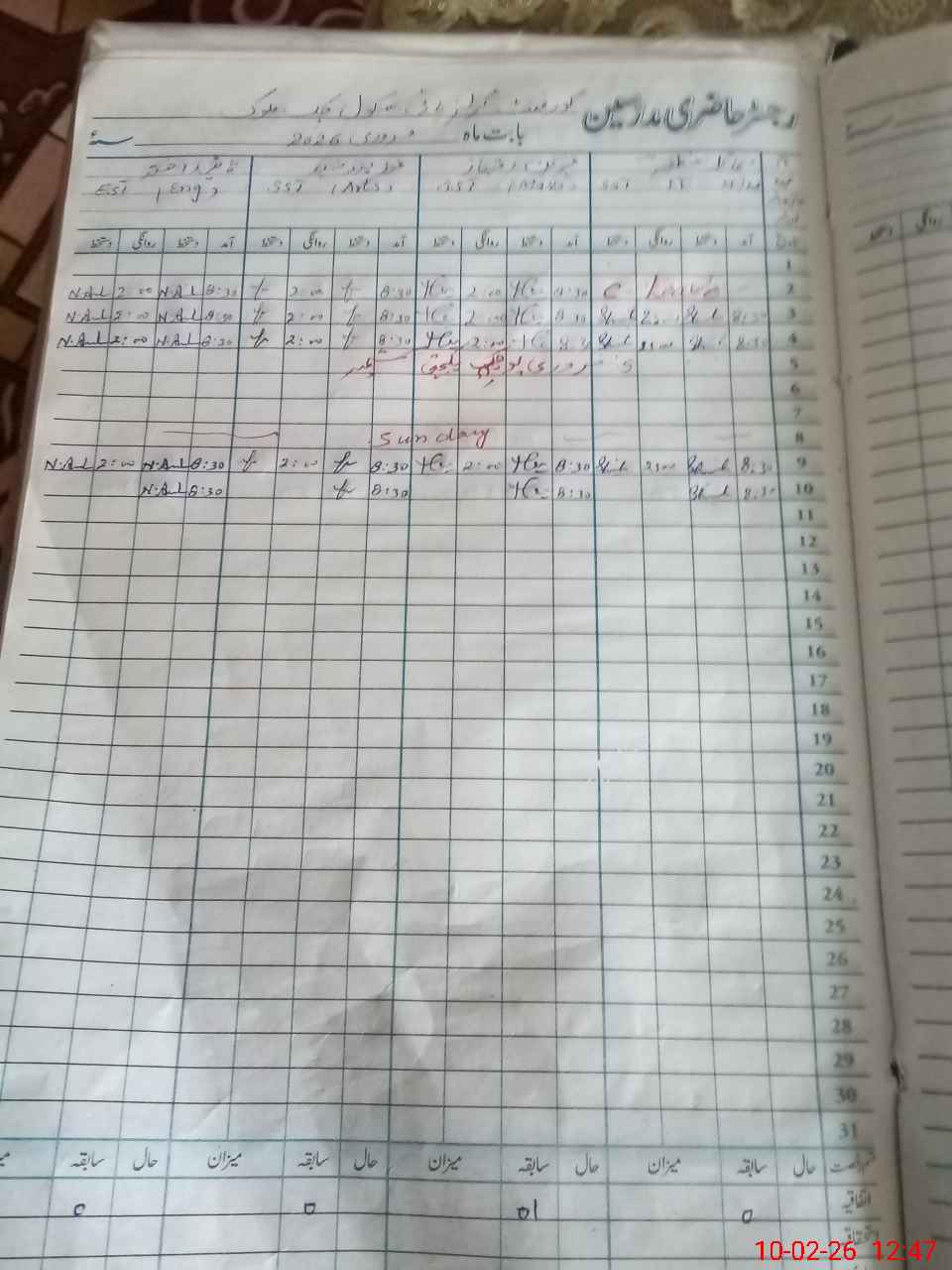 | No. of Students Present - Male | 0 | 10 | 1 | 0 | 0 | 0 | 0 | 0 | 0 | 0 | 0 | 0 | 26 | |||