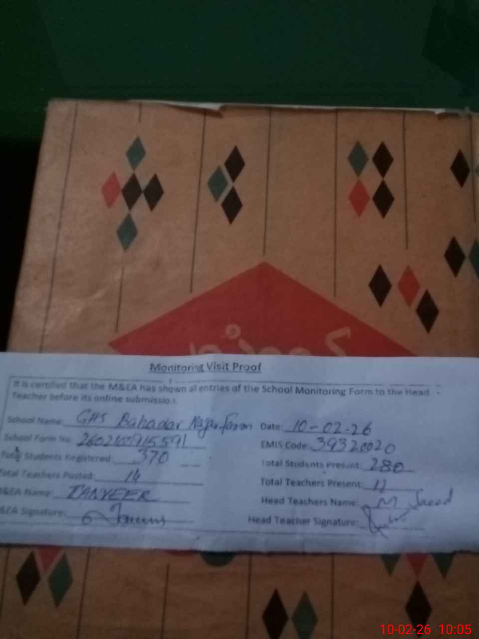 | EMIS Code: 39320020 | Name of School: GHS BAHADUR NAGAR FARM | |||