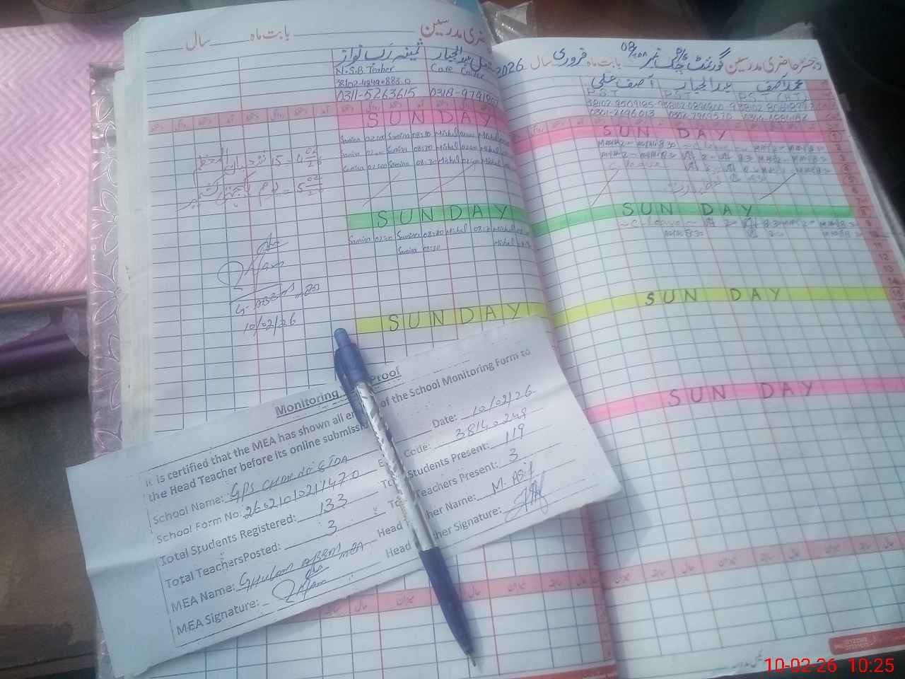 | Attendance Register | Head Teacher | MEA with School | Visit Proof |