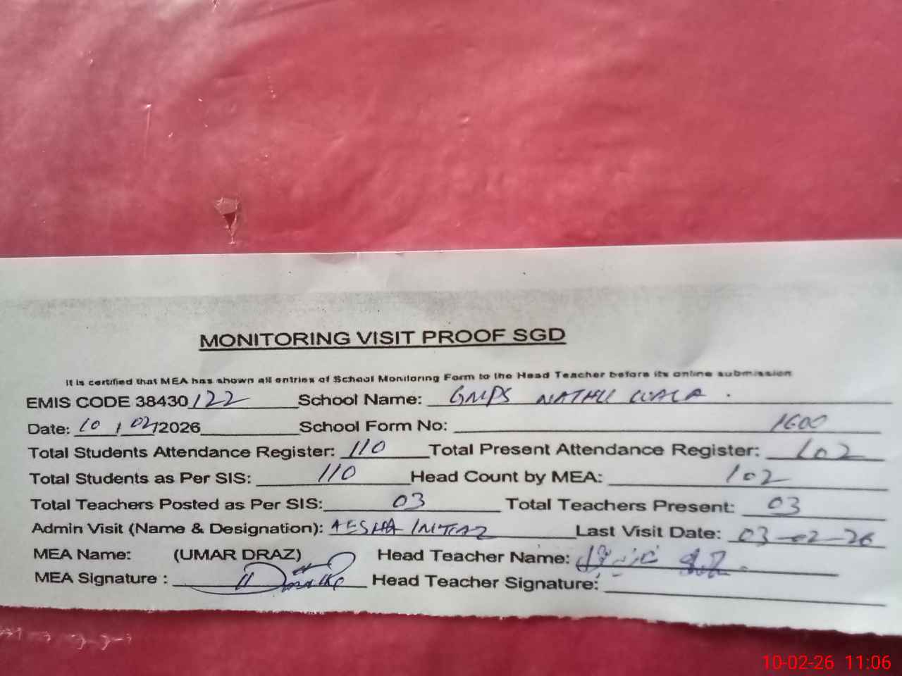 | EMIS Code: 38430122 | Name of School: GMPS NATHO WALA | |||
