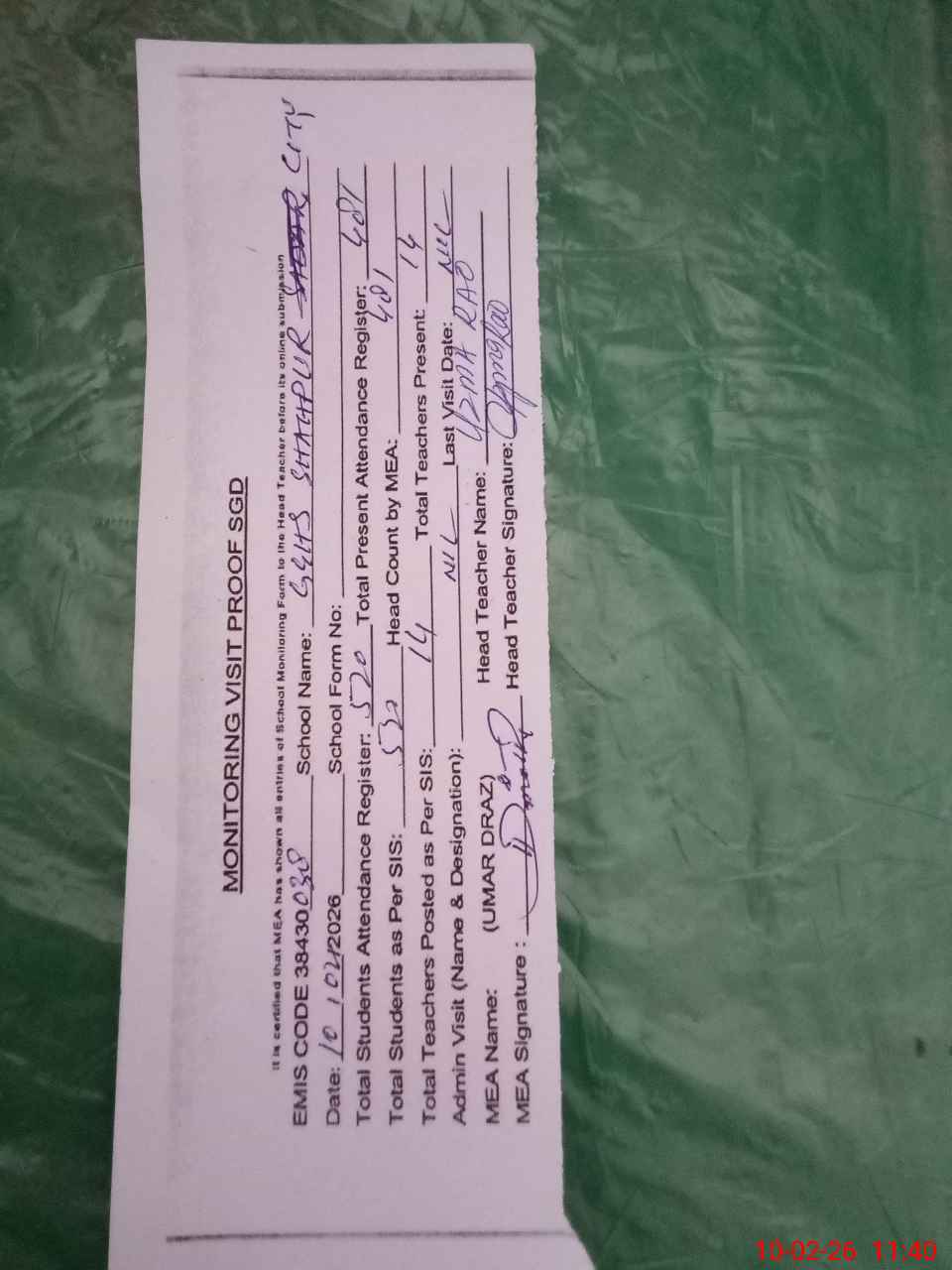 | EMIS Code: 38430038 | Name of School: GGHS SHAHPUR CITY | |||