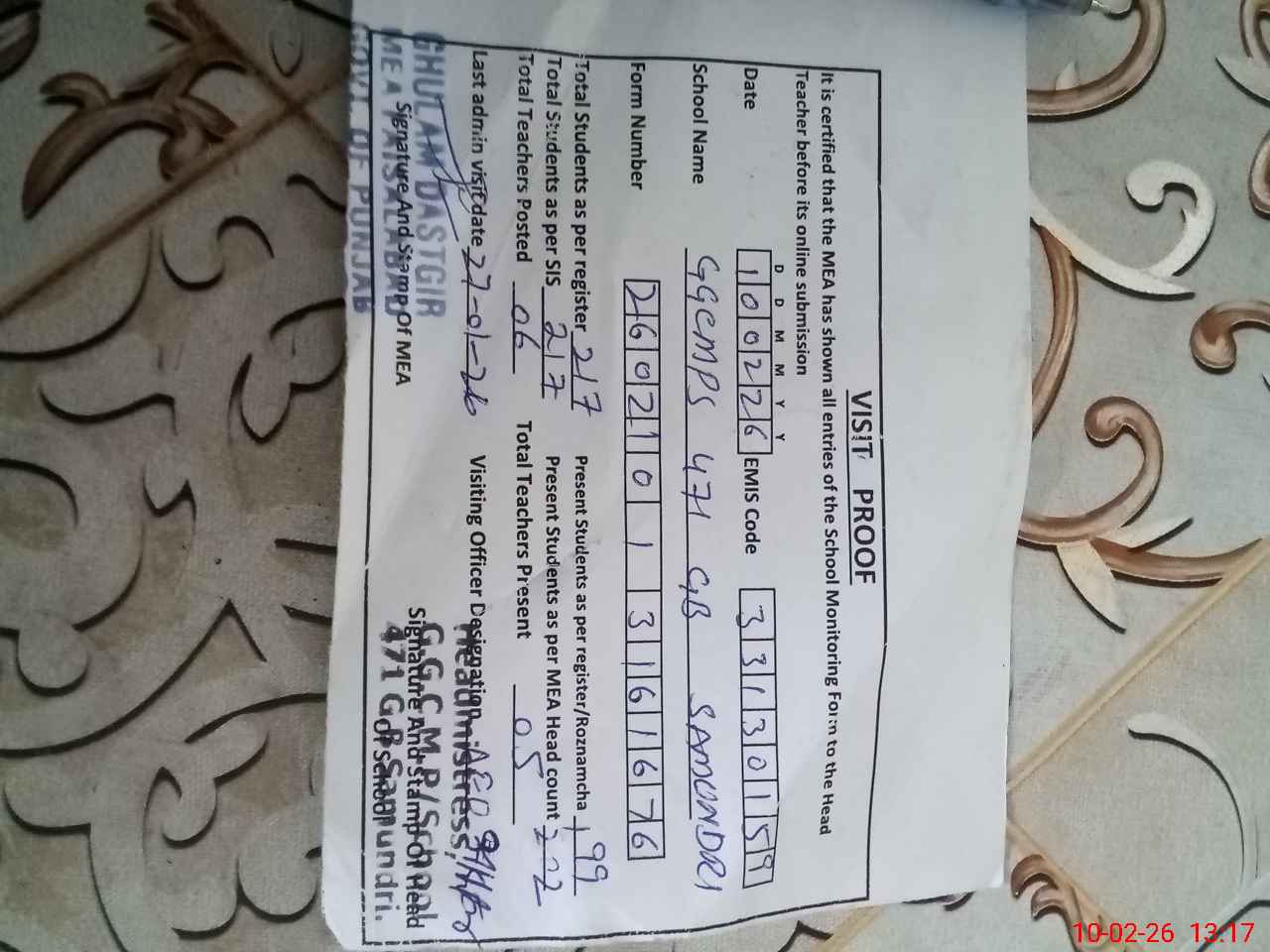 | EMIS Code: 33130159 | Name of School: GGCMS CHAK 471 GB SAMUNDRI | |||
